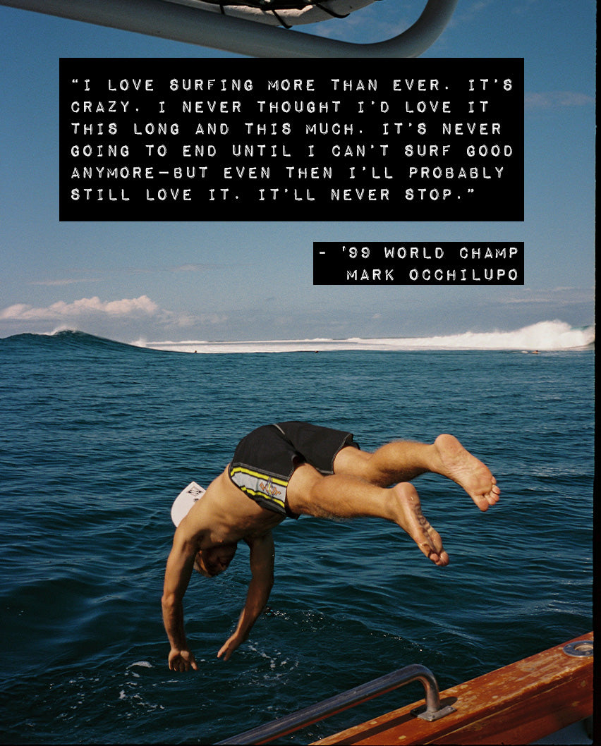 Mark Occhilupo better known as Occy, The Raging Bull, 1999 World Champ, is one of surfing’s most electrifying icons. Defining an era with raw power, fearless style, and uncompromising individuality.
