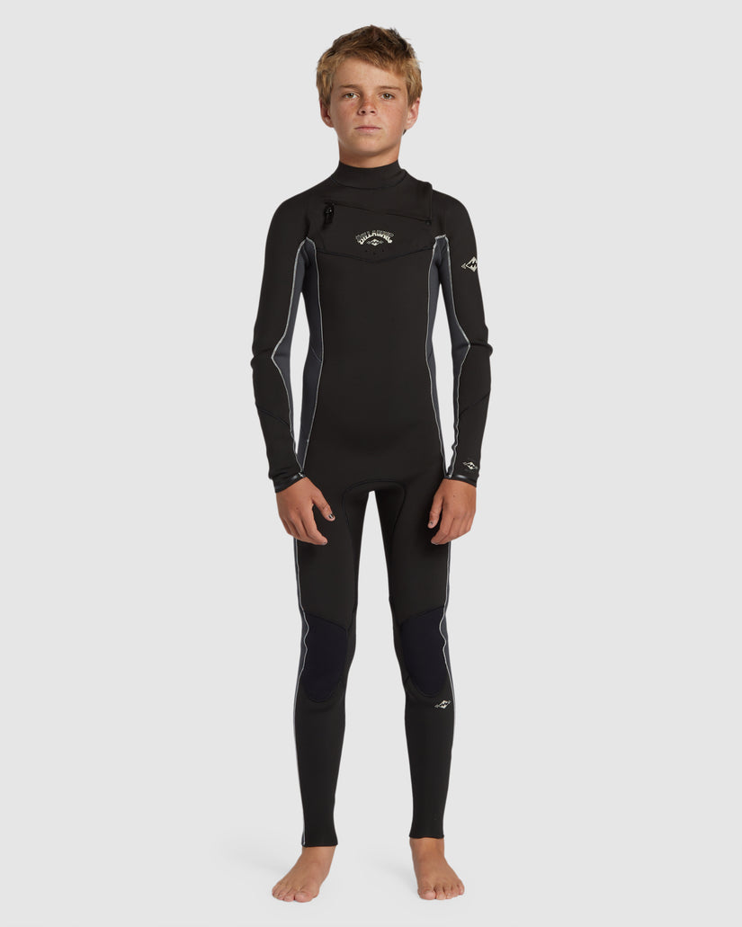 The Billabong Boy's 3/2 Absolute Chest Zip Full Wetsuit combines performance-enhancing materials and comfort in one. Made from sustainable PRO STRETCH fabric, Superlight neoprene and silicon stretch graphene lining, this boys' chest zip wetsuit is built with watertight seams and reinforced melco tape for ultimate durability. Topped with logo branding.