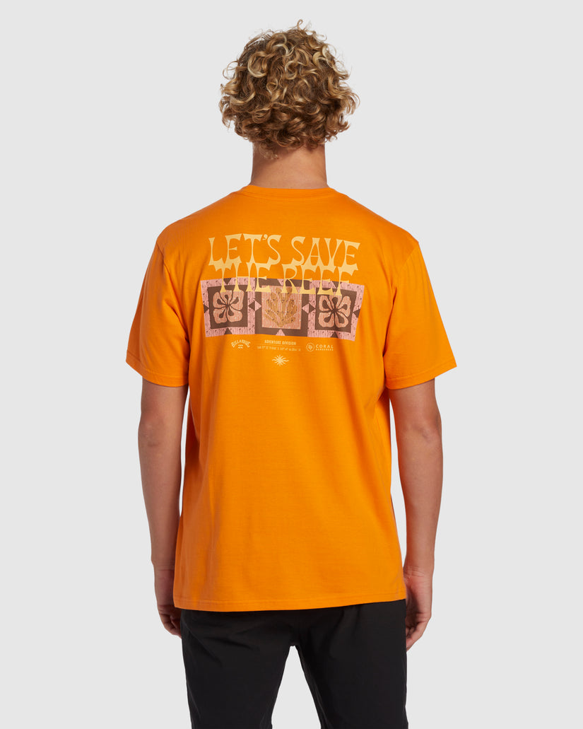 The Tiki Reef short-sleeve t-shirt from the Billabong X Coral Gardeners Collection features graphic art on the chest and back, a heat seal neck label for added comfort, and a side seam flag label. Plus, this crew neck tee is crafted of mid-weight organic cotton, so it's not only good for you, but better for the ocean too.