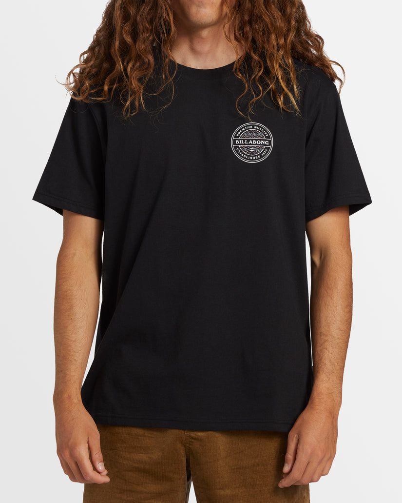 Elevate your closet essentials with Billabong's Rotor T-Shirt. Crafted of premium cotton, this men's crew neck tee has a regular fit with graphics at the chest and back, plus a heat seal neck label for extra comfort.