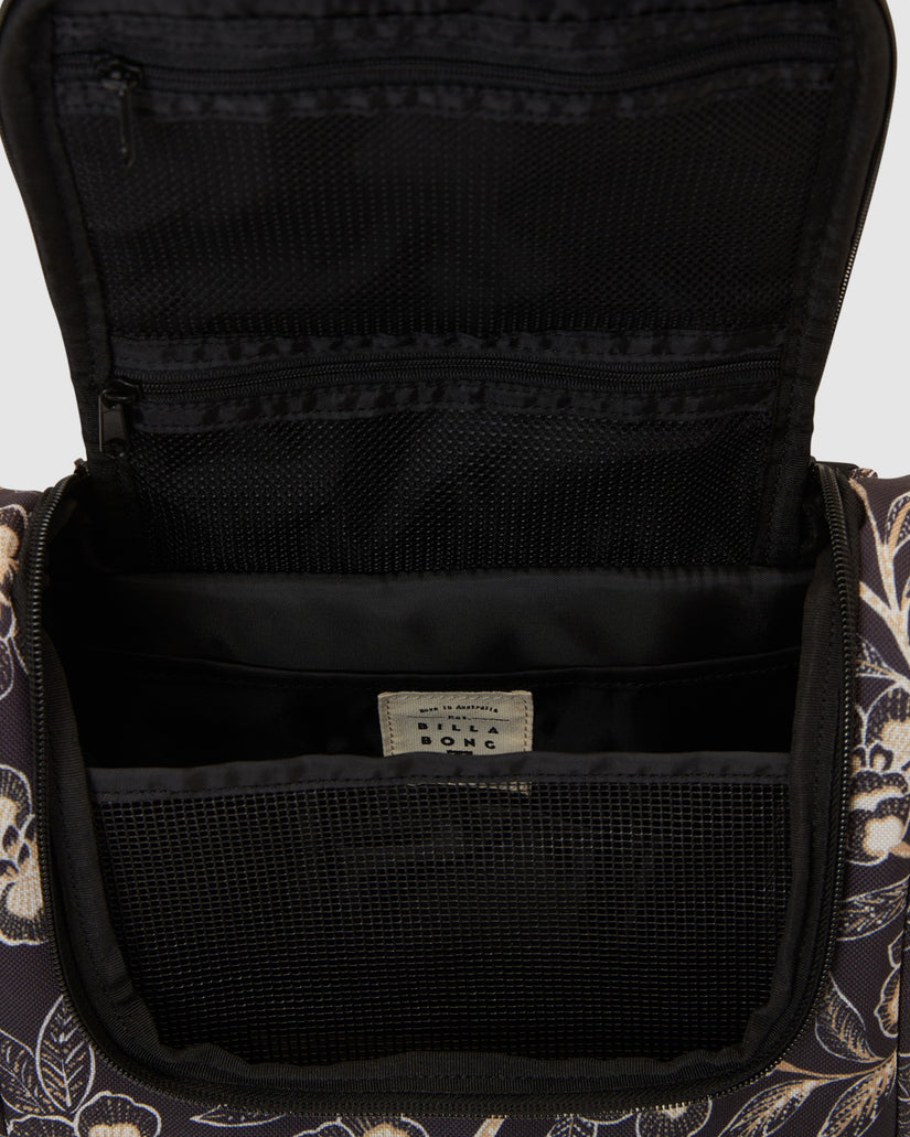 Even before you board the plane, you're on your way to paradise with the Travel Beauty Bag. Printed with tropical foliage, this durable toiletry bag features inner hanging hooks and mesh pockets to organize your holiday jewels.