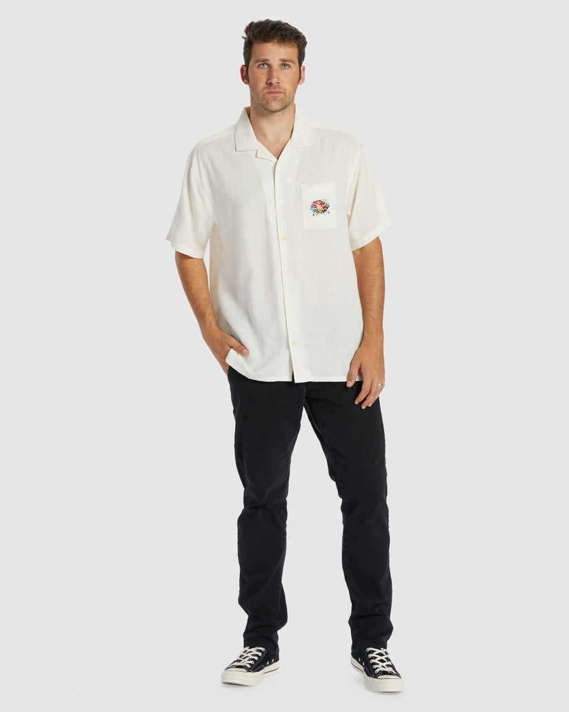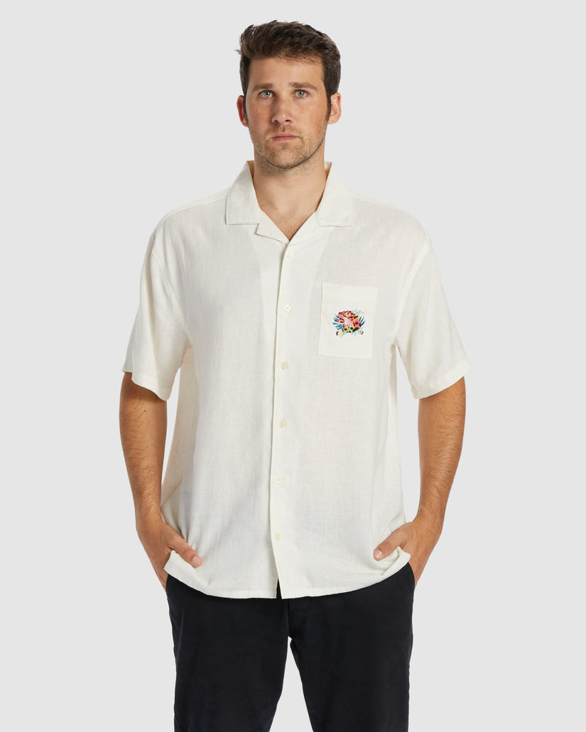 Crafted of blended linen-lyocell fabric of a lightweight and breathable feel, our Billabong Zeledon Vacay yarn-dyed short sleeve shirt features a collar neck, button up closure and chest pocket with a patch. Pair it with your chinos — instant holiday vibes.
